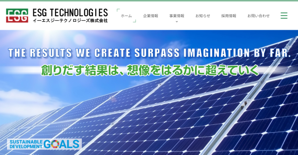 ※イーエスジーテクノロジーズ公式サイト/太陽光発電事業(https://esg-t.jp/business/renewable/solar/ )